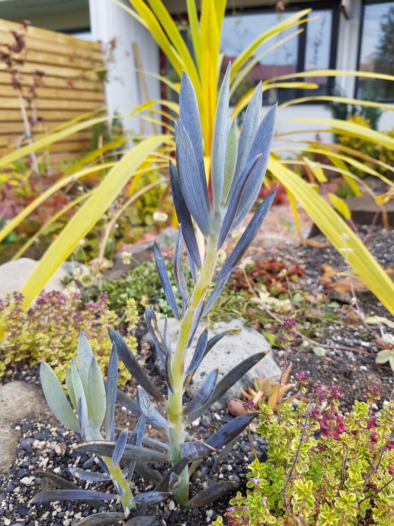 Þessi þykkblöðungur er illa aðlagaður fyrir Ísland og þolir ekki frost. Þarna hefur þann nú þegar lent í frosti, eins og sjá má á dekkri hlutunum og skaðinn skeður.