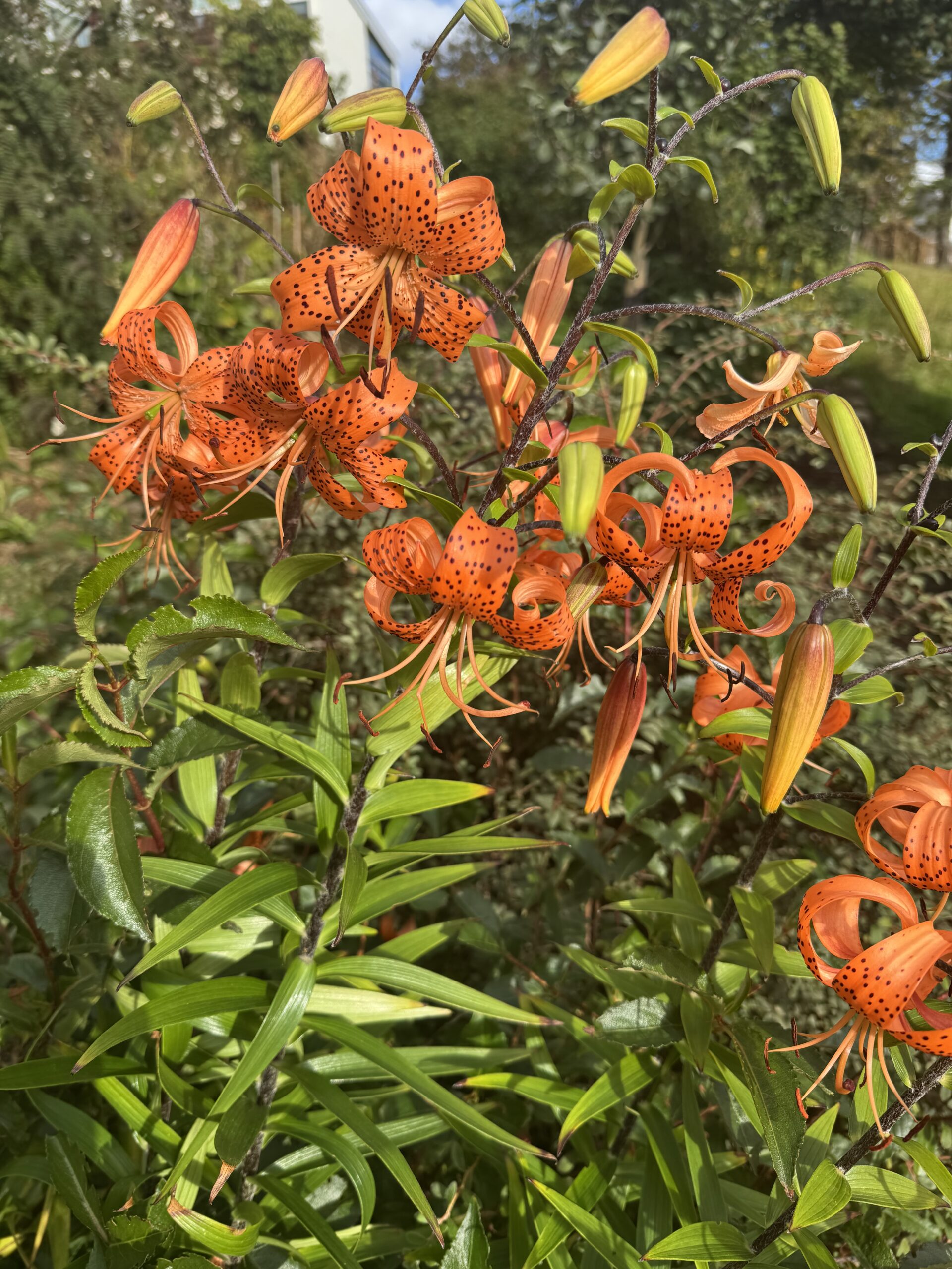 Nokkuð hávaxin lilja, óþekkt tegund/afbrigði. 80-100 cm á hæð. Mjög blómviljug og blómin standa lengi. Blómin eru túrbanlöguð, sterk appelsínugul með dökkum blettum. Þrífst best á sólríkum stað og í nokkru skjóli. Misjafnt er hversu lengi fræ af liljum eru að spíra.