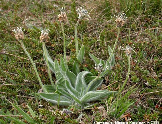 Meðalhá planta (15–35 sm) með lensulaga blöð og blómin í hnöttóttu axi. Blómgast í júlí.